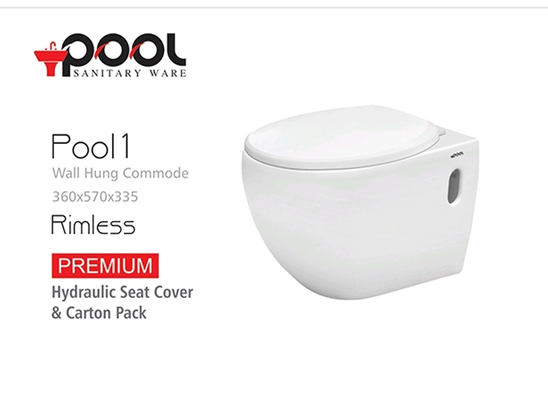 Wall Hang Commode Pool1 Pool Ceramics With Seat Cover (Rimless)